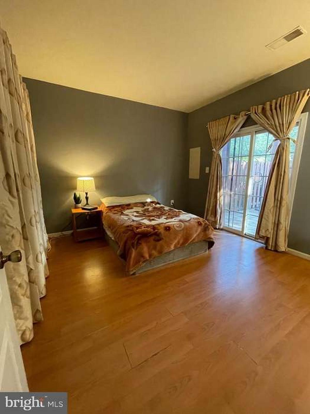 Ground floor bedroom attached to a full bathroom and patio. Seperate kitchen next to the bedroom that includes 1 microwave, 1 fridge, stove built into to the countertop, cabinets .