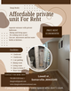Affordable 1 bedroom unit ( technically basement ) if you don’t cook .