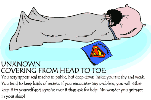 I dont think this thing is true... because dont people like move in thier sleep? I mean i at least have 3-4 different positions.... so I wonder which one truly my characteristic! ---------------------------------------------------------------------------------------------------------- I agree, and concerning multiple personalities well atleast five or six people all rolled into one are inside me and you never know which one is going to pop up or when! :D