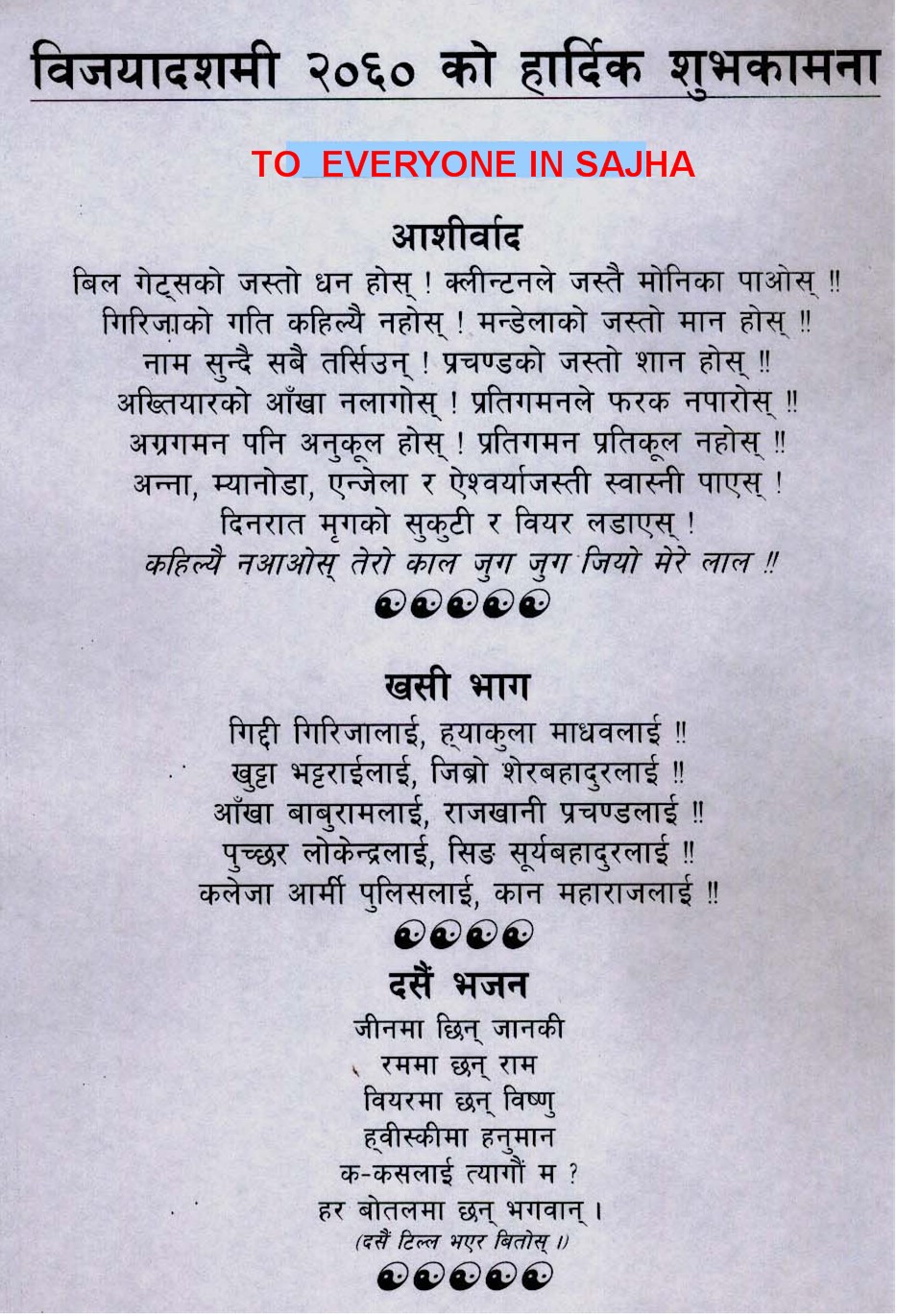 HAPPY VIJAYA DASHAMI TO ALL MY DEAR FRIENDS IN SAJHA! |