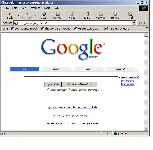 Instruction- 1. Point your browser to " http://www.google.com" 2. Click on the Preferences link 3. Select Nepali from the List Box 4. Click on Save Prefernces button.