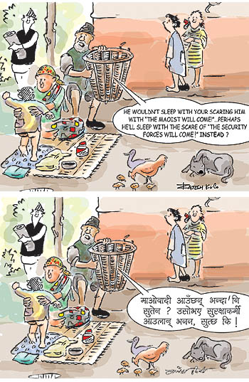 here we go another picture of reality: (from kantipur online or nepalnews.com) A nepali version of Sholay's dialogue.