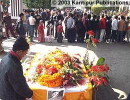 Photo caption: Hundreds of people queue to pay their last respect to popular folk singer Jhalakman Gandharva at the Royal Nepal Academy Sunday afternoon. Late singer passed away Saturday night in Kathmandu. (Online Photo : )