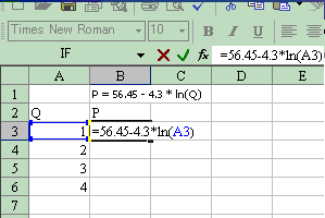Karnaji, Do you know how to plot a function into a curve in excel? (just opposite of what you have done above). For example: 1. P = 56.45 - 4.3 * ln(Q) 2. Q = expl(0.75 - 0.03*P) Is there a way to get intetegration of a function in Excel? For example, can we integrate the above equations to given values of P or Q? I have been doing these things on Maple. If they can be done in Excel, that would be great help.