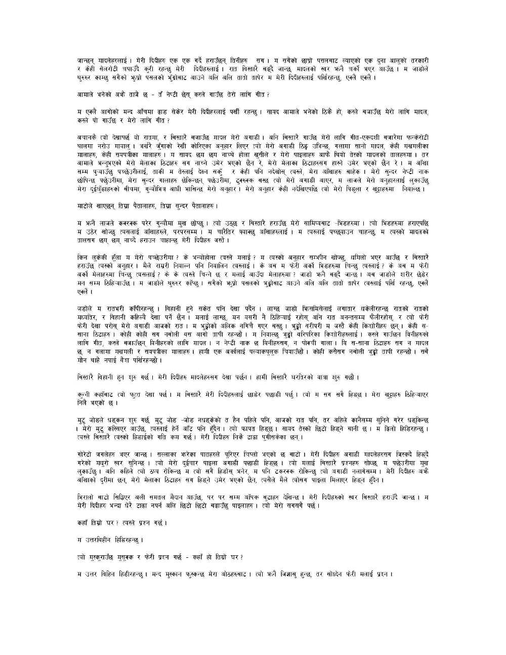 what a fine story !! dherai pachhi euta Chotilo katha padhiyo !!!