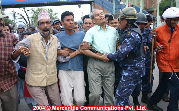 i dont care bout da politics but y does da ghurl cop has to hold vijaya gacheedars hand and tuck it in her breast does nepali women get "Vrasta" after joinin nepal police. hmmm