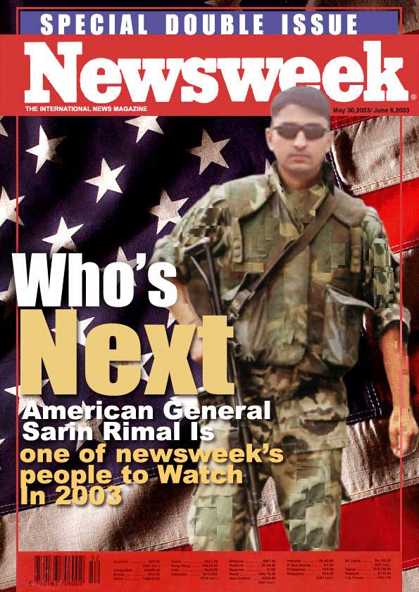this is a foking photoshop work . i did a search in newsweek for sarin rimal nothing found . slob shit