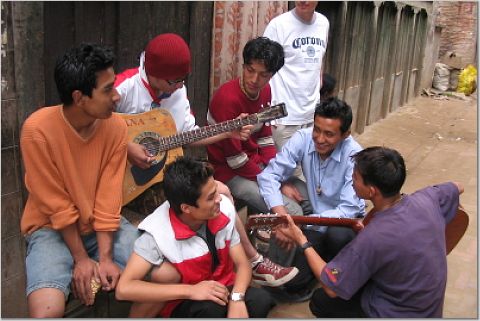 Having good time-- Patan -- Dupat tole.. they were playing 'wonderful tonight' by Mr. Clapton.
