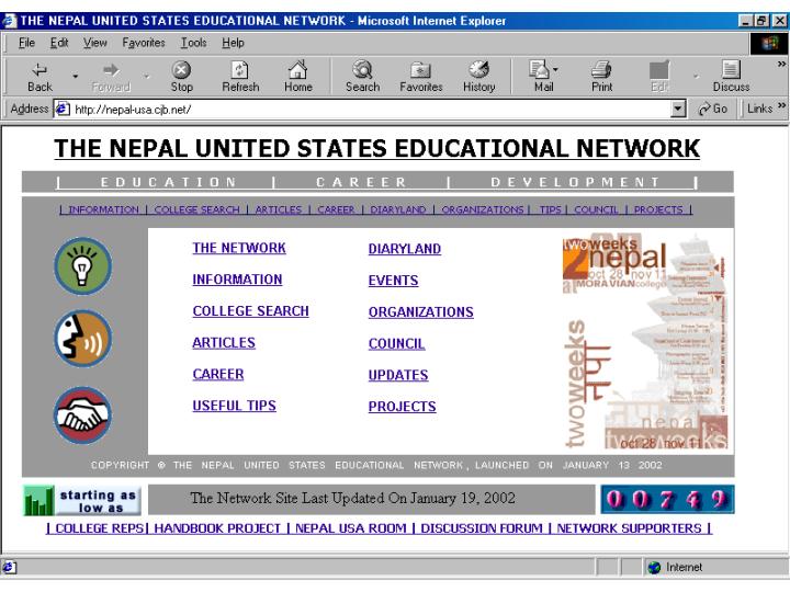 Main Page of Nepal USA Educational Netwo 19-Jan-02 frontpage