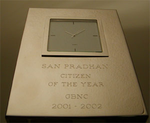 For readers who were not able to come to the GNBC Baisakhi Sanjh party at MIT (which is going on right now)... here is some news: To no one's surprise, San Pradhan has been awarded the GBNC citizen of the year award. Let us all congratulate him.