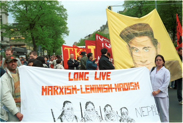This photo can also be found in from maoist website:http: //www.humanrights.de/n/nepal/ _____________________________ From that website, .....Revolutionary May1st in Berlin 2nd May/ Germany, Celebration of Workers day in Berlin by different Revolutionaries groups was historically success though the masses were attacked by large number of police forces. Many were injured seriously and many were arrested. Around 10,000 people More... ________________________________________ It might be organized by Revolutionay International movement(RIM). comminist parties like shining path of peru are also its member. It is well known that many extermist islamic organizations are also operating in western countries as a charitable organizations. Many exterme communist organizations are also operating there in the name of human right movement. ADDRESS: Die Karawane für die Rechte der Flüchtlinge und Migrantinnen Bremer Koordinierungsbüro: Internationaler Menschenrechtsverein Bremen e.V Wachmannstr. 81 28207 Bremen Tel.: (0421) 5577093 Fax: (0421) 5577094 mail@humanrights.de http://www.humanrights.de/ Spendenkonto: Postbank Hamburg, Kontonr. 99 29 207, Bankleitzahl 200 100 20 Spenden sind dringend nötig und steuerlich absetzbar.