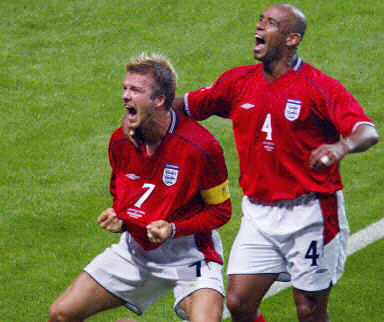 Apparently, Def, five million people (1/5 of total British workforce) took the day off today to watch the game. That is not counting 2.5 million others who have called in sick. Economist magazine estimates almost $2 billion, that's billion with b, of loss in productivity caused by this match alone. Dem Engleesh crayzee, maaan! Argentinians had the slogan, "if you are not jumping, you are Englishman." Well, today in Sapporo Dome, they were jumping and they were Englishmen. I wonder what Maradona is thinking now. Before today, he was telling everybody that English are quaking in their boots. I bet Argentinians are quaking in their boots now. Talking about the arena, was that football field something or what? First of all, it's a covered dome with natural turf. To grow the grass right, the entire field slides in and out - and wait, not only that - it rotates around inside. Dem Japaneeze crayzee, maaan! And whassup with that guy Rivaldo? Talk about being a faker. No, talk about being a woossie. So the other team-player kicked the ball at him illegally, but his simulation was so blatant, so pathetic, so yucky, I almost threw up. Yesterday, during the NHL game, they were showing and making fun of that clip, saying, "we do not want to be like that guy." Indeed. And how about taking one for the team? I feel so sorry for that Korean dude, who got hit by the ball at a point blank range, right on his fully exposed "crown jewels" in front of 2 billion people. Ouch! I get sympathy pain even from thinking about it. But then, to counter that pain, I remember those beautiful Korean female spectators, jumping up and down. I tell ya, dem Korean gals crayzee, maaan!