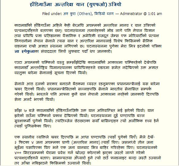 sabai chhodi puchhar ma haat. Of all places, damn UFO attacked drought plagued dukhi UP? ke ho ke ho? UP ma attack garya pani kaslai re ta bhanda.......(look at the picture...).