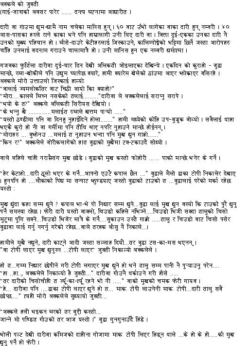 Jayahos, I read your story. I think you have a good imagination and rich vocabulary of jharro Nepali. You turned a simple chutkila of the baldmen into a good story for children. If you are located in DC-Maryland-Virginia area, INSL should seek you for their Nepali language education program. You have a good command of Nepali language. I must tell this, I feel sorry for the poor standard of Nepali language of some of Nepali ‘sahityakar’ in the US. Hoping more stories from you.