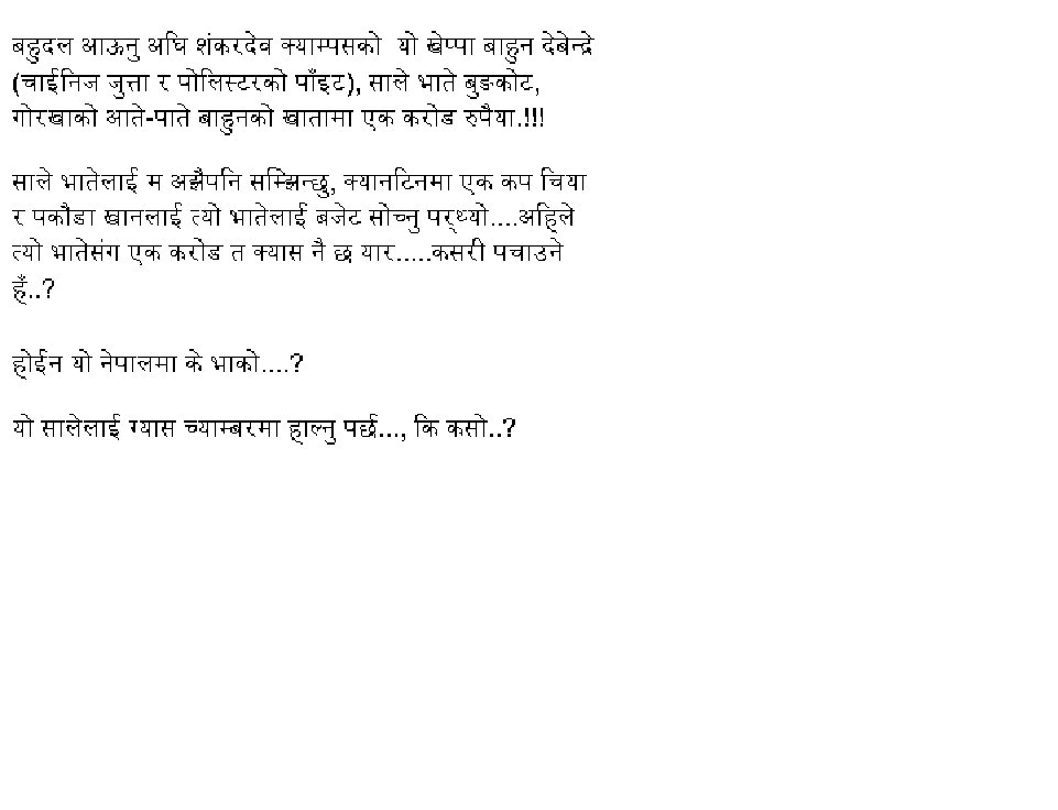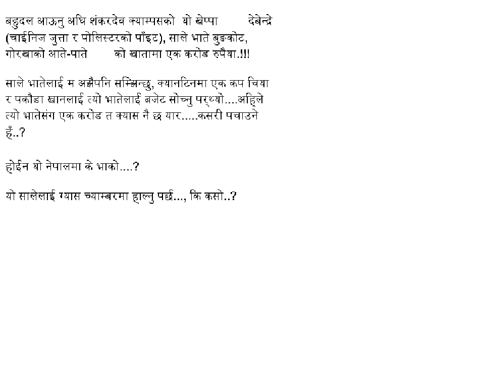 Guru jeeeee......DARSAN!! Well, Guru ji, after reading the hot news in KOL I was so mad and "aakha nai dekhina" because personally I knew Debendre from very close distant in my college life. In fact, I am not racist- the big prove is that I myself is bahun (my mother is not)....But, I hate these bastards who are poor quality/ ghatiya bahuns..........Though, I know what you are trying to suggest me so I changed my posting as follows: