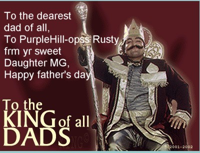 Opps! its a father day, alright Purple/Slim dad, what should i present you today?eee tommorow will be saturday..inneed i should have some free stuff in such special day!satty n fath's day!!!eee....i hope u'll let me go outside hehhe...anyway dad have fun i too wont argue,no objection if u like to give me a new step mom:P once again Happy father's day!!!!oyeeeeeeeeeeee