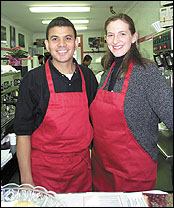 Hearts and flowers amid mountains and mochas: Couple opens new espresso and ice cream shop By J.B. Shelleby / JSHELLEB@CNC.COM Wednesday, February 12, 2003 This Valentine's Day, Umesh and Zille Bhuju will be celebrating more than their marriage; they'll celebrate the grand opening of Zumi's Espresso and Ice Cream on Market Street. Zumi's carries espresso and coffee beverages, baked goods, ice cream, and their own coffee/ice cream creations. Umesh, a native of Nepal, said they wanted the shop to appeal to people who love adventure. Umesh spent time as a guide in the Himalayan mountains and helped others raise money for to climb Mt. Everest. The walls of the shop are lined with photos from Essex mountaineer Mark Richey's travels in Nepal and Peru. Customers are invited to bring photos and postcards from their own adventures to be posted on bulletin boards at Zumi's. Umesh came to America in 1990 as a YMCA counselor, working with kids in soccer and rock climbing (naturally). Years later, he met Zillie, a first-generation Greek-American, when they both worked at a residential program for autistic children. At the League School of Boston, Zillie worked in the afternoon program and Umesh worked overnight. Zillie knew of another Nepali counselor coming to the program and thought that he and Umesh might become friends. As it turned out, it was Zillie and Umesh who became friends ... and then some. On a trip to Nepal, Umesh proposed to Zillie at 18,000 feet as they climbed Mt. Pumori, the mountain next to Mt. Everest; it is called the daughter of Everest. They were married in June 2000, and for years talked about starting their own business. Zillie, a social worker, wanted to do something related to children, and Umesh wanted to involve coffee. He had worked as a shift supervisor for Starbucks in Boston as he earned his degrees, and he enjoyed the business. He even thought he could do it better and cheaper. To welcome children into the business, they added ice cream to the menu and plan to have a blackboard available to keep little hands busy. The Bhujus chose Ipswich because they had ties to the North Shore - Zillie grew up in Topsfield and they live now in Essex. Ipswich was right in between. Zillie's father owns Topsfield House of Pizza and has offered the young couple useful advice about running their own business in the food industry. But he didn't need to give them advice on choosing a name: it just came to them. Their 2-month-old daughter is named Uma Pumori, after the mountain. Before Uma was born, the Bhujus didn't know her gender. Friends started referring to the baby as "Zumi," a combination of their names. Since they were planning the shop at the same time, it only seemed natural to carry on the name. Zillie will continue to do the behind-the-scenes work while Umesh will be at the shop to welcome customers with a smile. A basket on the counter invites suggestions and comments from customers, and here's a good reason to give some: customers who invent a drink the owners think is good enough to add to the menu will have the drink named after them. |