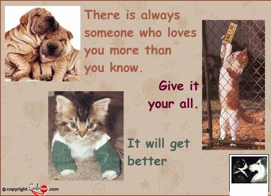 i saw the one "it will get better..." when I was (well...am) in the worst condition in my life (till now)...i do not know if it will ever get better...what would you expect from life if you were at a very bad situation (leading to a very bad future) and not a single life is with your decision (but u know that it is the only decision u can make)??? HELP!! nk