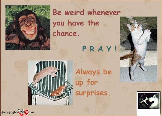 how cute!!!!! :) I amost want to go get kittens and puppies...the first pic in which the cat was hung along with the mouse was really funny and cute.
