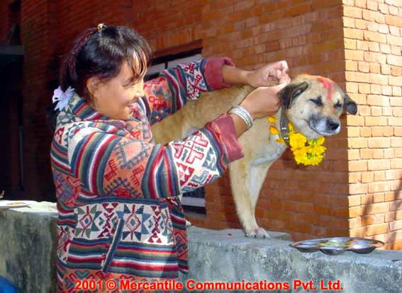 Second day of Tihar "Kukur Tihar" today Kukur Tihar, the festival of dogs, is being celebrated in every house today, to mark the second day of Yamapanchak of the Tihar, the second biggest festival of Hindu. Dog, which is an animal well known for being loyal to people since ancient times, is worshipped once a year on this day. People worship dogs, garland and feed it today. Dog, which is said to have accompanied Dharmaraj Yudhisthir on his journey to heaven has a close relationship with mankind. Yamapanchak is celebrated as a symbol of co-existence of human beings with all the living things in nature by worshipping the crow, dog, cow and oxen since ancient times, as part of a Nepali culture. nepalnews.com pb Oct 20 06 ---------------------------------------------------------------------------------------------------