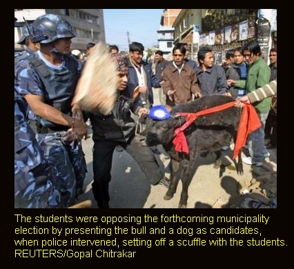 Here is another joke, Guys. :-)       Insurance for poll candidates     Kantipur Report       KATHMANDU, Jan 26 - The Election Commission (EC) Wednesday announced that it would insure all the candidates taking part in the upcoming polls scheduled for February 8.   According to a statement from the EC, the insurance amount of mayors and deputy mayor is Rs 700,000, Rs 600,000 for ward chairman and Rs 500,000 for candidates of ward members.     - http://kantipuronline.com/kolnews.php?&nid=63735  All I can say is HA HA HA HA. :-)
