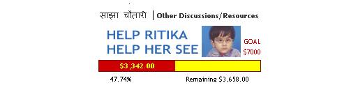 It's encouraging to see that we are already 25% through within 6 days. Thanks to everyone who have taken time out of their busy schedule to make a donation. Your help can potentially change Ritika's life. We need to raise more in order to reach our goal. If anyone of us have been procrastinating to do this good deed, please take a few moments of your time and donate now! Click here to donate now