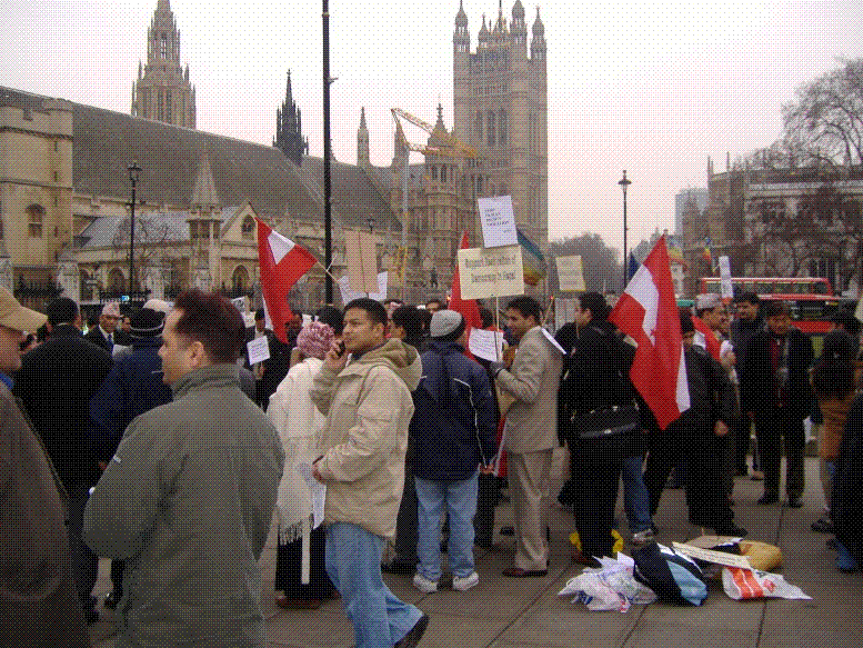 I went to witness one of the protests today. There were no narabaji, just a symbolic protest in front of the British lawmakers. I went there to show my solidarity with the democracy supporters and found that they were far more active than me for the common cause. Although just around a hundred in number, they were there to support democracy. I took few photos as well. I wonder if my attempt works or not but I am trying to post some of them. Apologies in advance if my technicality failed. Sanji please delete this post if the html codes are not accepted:)  width="300" height="300">  width="300" height="300">  width="300" height="300">  width="300" height="300">  width="300" height="300">