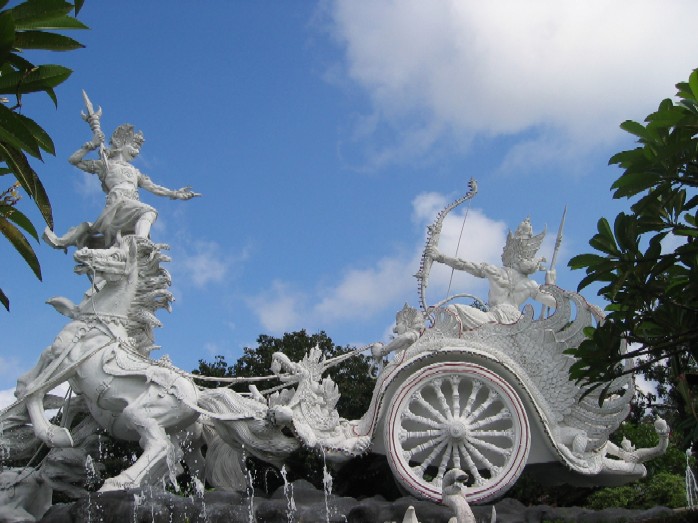 Rauniyar ji: Indeed, we seem seek the familiar in the unfamiliar. Ani, I took a pic of the New Road gate for you (a friend of mine has the memory card...so can't display it now); the gate looks as dilapidated as from your pic if not more. SsNY: That was funny! I think it's more like Shrek's princess. I spent 8 memorable days in Bali. Another pic is of a gigantic sculpture of Arjun and Krishna from the Mahabharat Yuddha scene! Zalim Singh: Thank you. Yes, the Balinese are predominantly Hindu and extremely religious. There are flower and incense offerings everywhere.