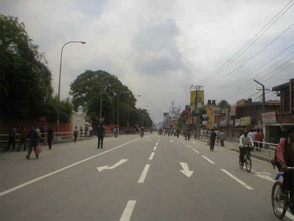It has been a surreal morning in Kathmandu. It seems like we've had our own version of 9/11. From atop the roof of a prominent building in central Kathmandu, the city resembled a burning oilfield as thick plumes of smoke arose from numerous corners of the city. Jame Masjid in Ratna Park was vandalized as armed policemen watched on, petrified and unsure about what to do. Rumours have it that numerous "manpower" agencies in Kathmandu have been destroyed. I personally saw and heard glass panes of the Gulf Air office in Hattisar being smashed, its computers and office furniture dragged outside and set on fire. Numerous shells of tear gas have been fired at different locations in the valley to disperse the mob. There are also rumours that the fugitive Chiranjibi Wagle's house has been destroyed. Amidst all this chaos, the district administration office has finally declared a curfew beginning 2 pm. It seems that the tire-burning and rampant vandalism as come to a halt as people can be seen scurrying about trying to make it to their homes. Oh wait a minute, even as I write this, a colleague who is still on the roof monitoring the situation reports that a few rounds have been fired. By whom? At whom? It is not clear. I'm including a few quick shots from my Nokia. 1:27 pm. Kathmandu.