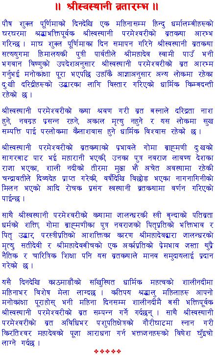 Yes pali ta maile Swasthani bhanne bha chu ...aati bhakhar nepal bata kitab magayeko thiye .....baru swasthani bhanna suru garne din kahile ho ..............