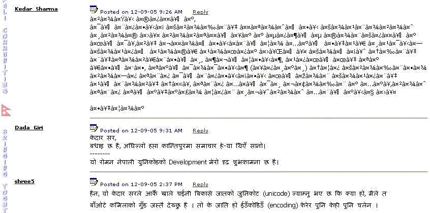 I don't know what's the issue with encoding unicode UTF8 to read Nepali unicode. Now I can't even read my own previous posting without changing encoding. This is quite strange.