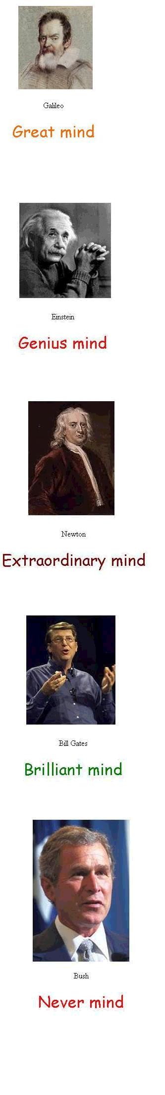 Why for a change? I think Bush is brilliant already. :) Has anyone figured out how Bush manages to wake up as the president of USA every morning? If that's not brilliant, WHAT IS? Don't try to hard. you are already very nice to me. Thank you. LOL. :)