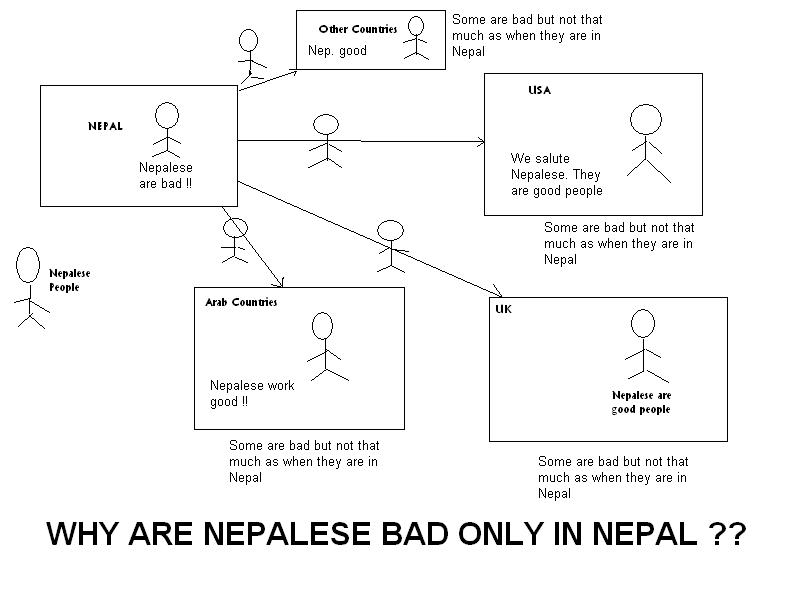 Guys, I have never understood why Nepalese are bad only in Nepal ? The same nepalese when they enter other countries, they are the best (some exceptions but overall) but they are bad when they stay in NEPAL .. WHY ???