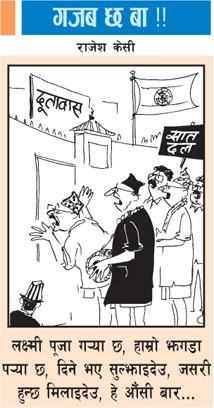 Great political satire!! its not uncommon for Nepalese political parties to knock Embassy's door every time when situation changes.. great job Rajesh ji... published on 10th November 2007