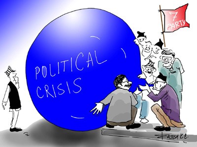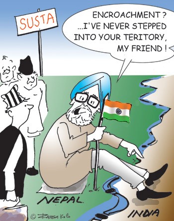 He may be inspired by RK Laxman.. We all gets inspired by something or somebody at some point.. Its good to be inspired, not imitate. We should judge people from the creativity on his work. And Rajesh KC's work need to be respected. He is a good political analyst and comic. He has his own trademark. This following cartoon was published in June 2007. It still implies in current political situation.