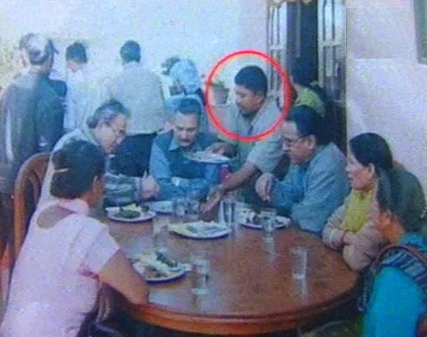 The above cartoon is well explained after you see this photo.. the man in red circle is Ramhari Shrestha...its said that he used to host meal to the Maoist leader.... good humor..