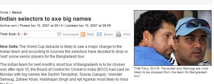 . I do not think Indian selectors need big names for bangladesh tour. Not everyday is like Bangladesh's day, not that I'm trying to sound over-confident but spotlighting the reality. Moreover, they do need to rest their good players and conserve their energy for bigger matches in the future. :-)