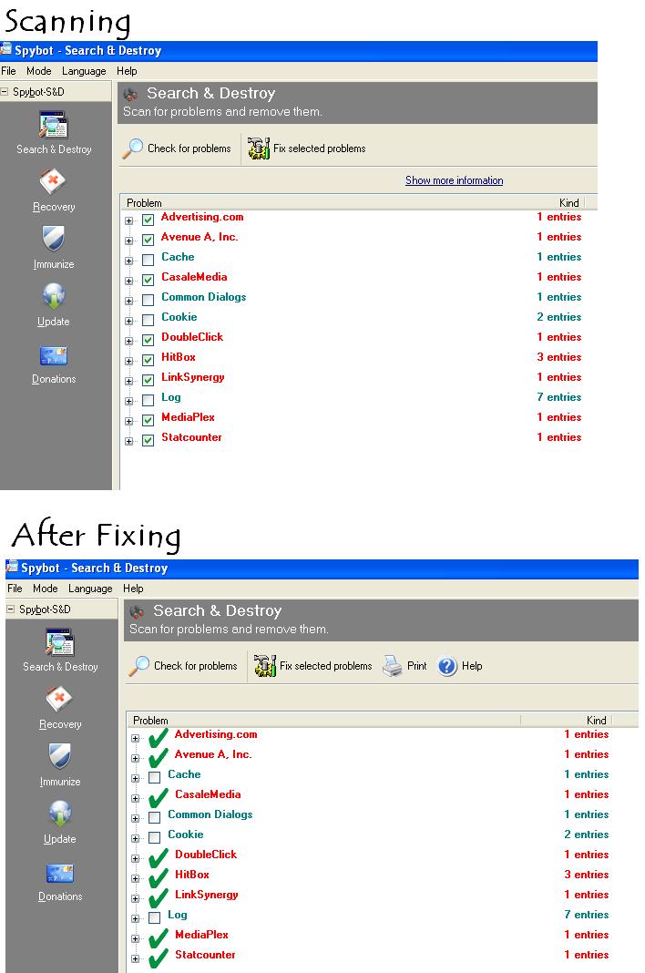 Hello All! I am getting constant problem from Viruses. Anyone there to help me. I have attached image of scanning of viruses using 'Search n Destroy' as well as the image after that software fixes the problems. Though it is fixed now, it will appear tommorow if i scan agn. How can i get rid of that permanently.