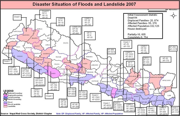 The floods that wash away villages, villagers and destroy so many lives in Nepal are neither unprecedented nor unlikely to happen again. This year, the heavy rainfall has affected almost half of our country – 47 districts in total with some 330,000 people have been affected. Banke, Sunsari, Mahottari, Sarlahi, Rautahat, Parsa, Bardiya, Saptari, Dhanusha, Jhapa and Morang are the most heavily affected. According to the Red Cross, 422 people have been killed and 173 are missing. The food and water supply have been severely disrupted and the contagious diseases are spreading fast.
