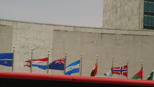 गत फेब्रुअरीमा न्यु योर्कमा अबस्थित UN को भवनमा पुग्दा त्यहा रखिएको नेपालको झन्डाको बिजोक देख्दा मन सर्है खिन्न भयो (हेर्नुहोस् फोटो) । अरु सबै झन्डा फर्फराएको छ भने नेपालको झन्डा भने अल्झिएको र च्यपिएको छ। सयौ झन्डाहरुको माझ फर्फराउन नसकेको नेपालको झन्डा भेट्नलाई त्यसैले पनि धौ धौ परेको थियो। फर्फरउन नसकेको झन्डा आँफैमा सन्केतिक थियो। तर फर्फराउन नसकेको खास करण भने नेपालको झन्डाको आफ्नै आकर नै हो। नयाँ नेपालको सुरुवत संगै नेपालको झन्डामा पनि केही परिवर्तन ल्याउने हो कि? नेपाली भएको नातले मलाई आफ्नो राष्ट्रिय झन्डा सर्है माया लाग्छ। तर किन हाम्रो झन्डा मात्र अरुको भन्दा नितन्त फरक? अहिलेको झन्डाको आकरलाई निलो पृष्ठभुमिको चतुर्भुज भित्र राख्ने हो भने हाम्रो झन्डा अरु झन्डाको आकरसँग मिल्दो पनि देखिन्छ र अरु झन्डासंगै सधैं फर्फराइ रहन्छ। तपाईंको बिचार पनि सुनौ न..