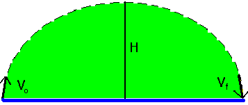 Derivation of the Maximum Height Reached by a Projectile Tbottom = mgH1 + 1/2 mV02 Energy is Conserved Ttop = mgH2 + 1/2 m(Vtop)2 mgH1 + 1/2 mV02 = mgH2 + 1/2 m(Vtop)2 H1 = 0 1/2 mV02 = mgH + 1/2 m(Vcosq )2 Divide by m; m cancels 1/2 V02 = gH + 1/2 (Vcosq )2 V2 = 2gH + (Vcosq )2 Multiply both sides by 2 1/(cos2q ) = (2gH)/ (Vcosq )2 + 1 Divide both sides by V2 = 2gH + (Vcosq )2 (Vcosq )2 (V2(1 - cos2q) / (2g) = H Multiply both sides by (Vcosq )2 Energy is Conserved Ttop = mgH2 + 1/2 m(Vtop)2 mgH1 + 1/2 mV02 = mgH2 + 1/2 m(Vtop)2 H1 = 0 1/2 mV02 = mgH + 1/2 m(Vcosq )2 Divide by m; m cancels 1/2 V02 = gH + 1/2 (Vcosq )2 V2 = 2gH + (Vcosq )2 Multiply both sides by 2 1/(cos2q ) = (2gH)/ (Vcosq )2 + 1 Divide both sides by V2 = 2gH + (Vcosq )2 (Vcosq )2 (V2(1 - cos2q) / (2g) = H Multiply both sides by (Vcosq )2 H = (V2(1 - cos2q) / (2g)