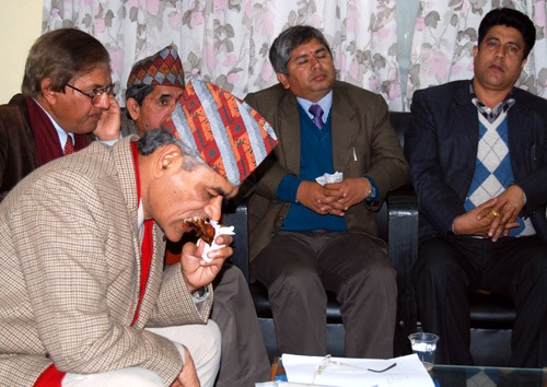 Big Bite: Secretary at the Ministry of Agriculture and Co-operative Tek Bahadur Thapa takes a bite of chicken roast during a discussion programme on bird flu in the capital on Tuesday. source : ekantipur.com